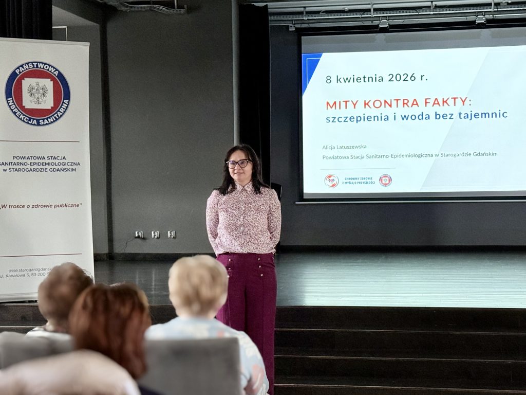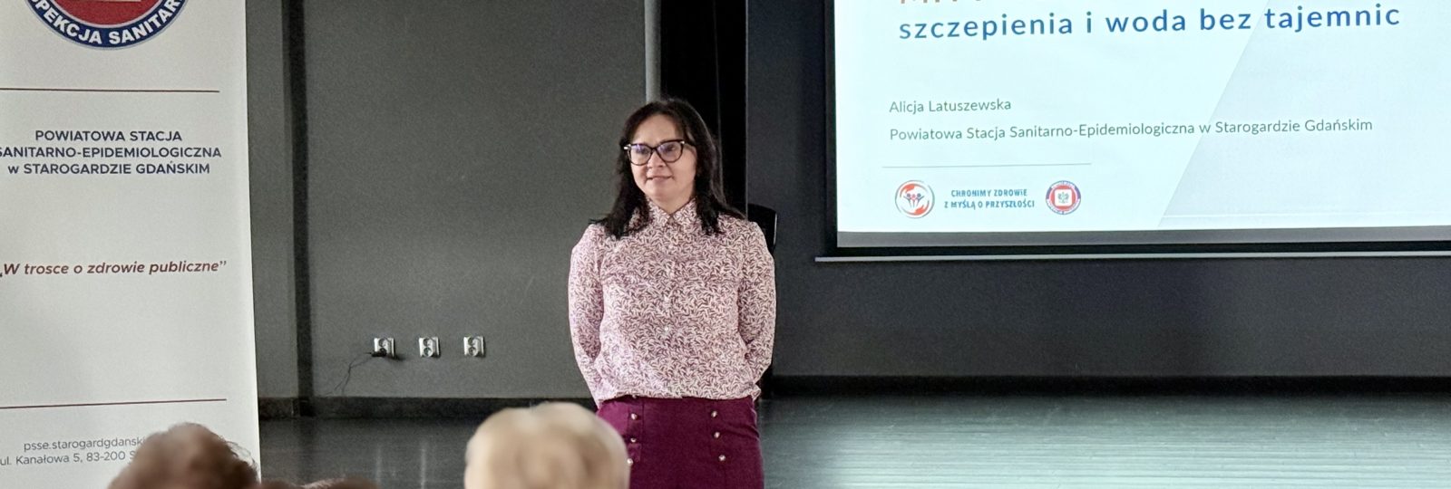 15.04.2026 r odbył się wykład poświęcony zdrowiu i codziennym wyborom, które mają realny wpływ na nasze bezpieczeństwo. Spotkanie poprowadziła pracowniczka Powiatowej Stacji Sanitarno – Epidemiologicznej w Starogardzie Gdańskim która w przystępny sposób przedstawił zagadnienia związane z jakością wody oraz szczepieniami.
