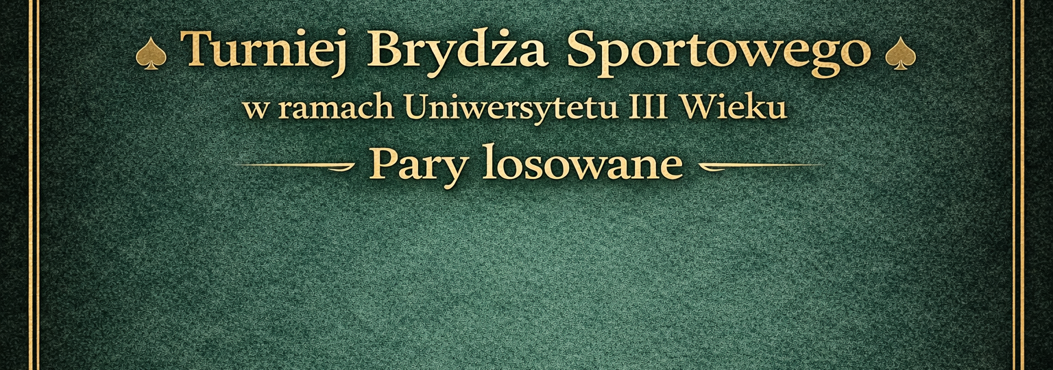 24 marca 2026 r. w Starogardzkim Centrum Kultury odbył się Turniej Brydża Par w ramach Uniwersytetu Trzeciego Wieku. W rozgrywkach wzięli udział zarówno doświadczeni gracze, jak i pasjonaci tej wymagającej gry, co stworzyło dobrą, sportową atmosferę i zdrową rywalizację.