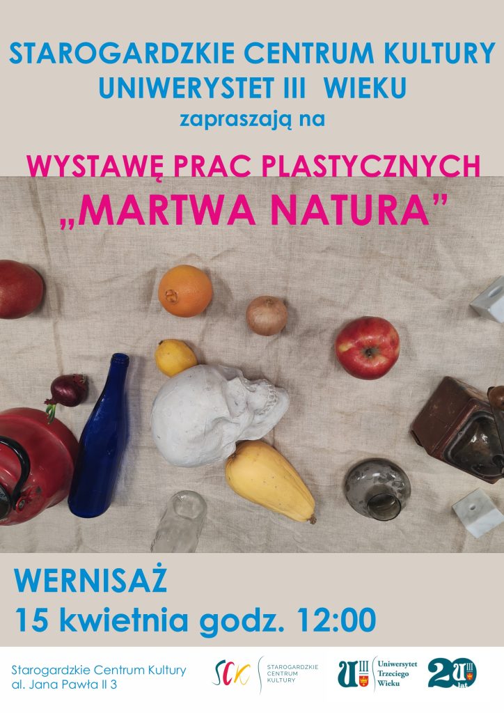 Prezentowane prace powstały podczas zajęć, w których uczestnicy rozwijają umiejętności obserwacji, kompozycji i pracy z kolorem. Tematem przewodnim wystawy jest martwa natura, klasyczna forma pozwalająca uchwycić piękno codziennych przedmiotów i ćwiczyć warsztat artystyczny.