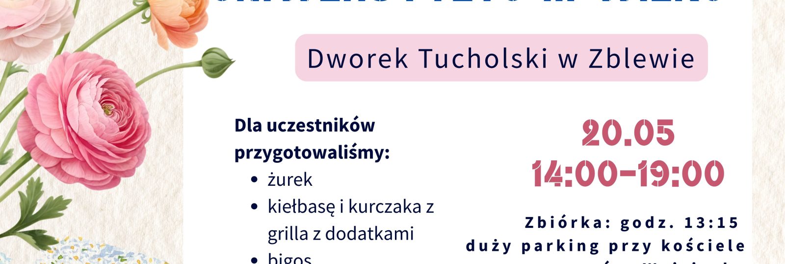 Zapraszamy studentów Uniwersytetu Trzeciego Wieku do udziału w plenerowym zakończeniu roku akademickiego, które odbędzie się 20 maja (środa) w godz. 14:00–19:00 w Dworku Tucholskim w Zblewie.